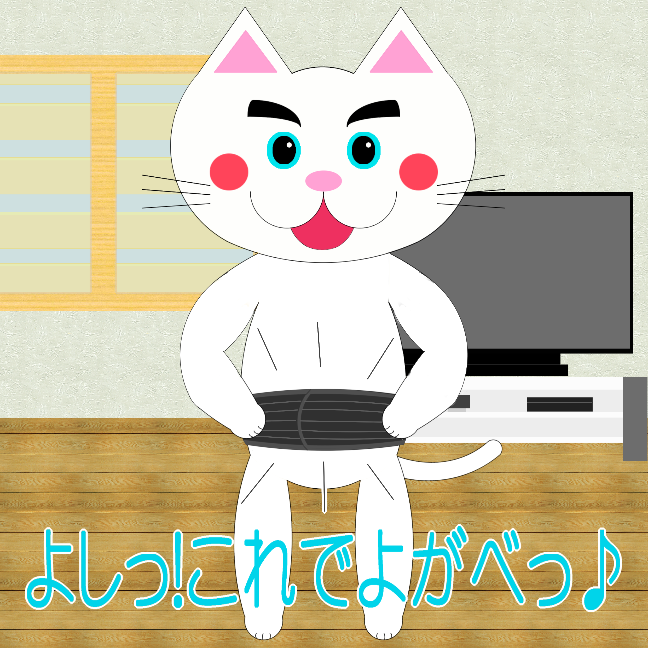 「なまねご」のワンポイント方言-腰サポーターを付けるレオ君