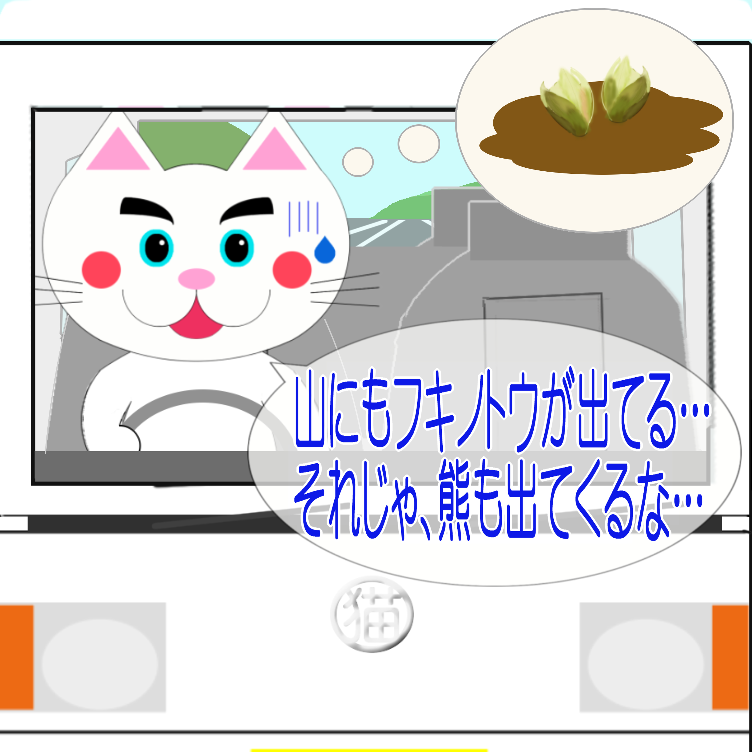 津軽弁「山さもばっけではてら… へば、熊もではてくるな…」 ワンポイント方言/津軽弁 X コピー 2026.04.10 今回の「なまねご」のワンポイント方言・津軽弁は、「山さもばっけではてら… へば、熊もではてくるな…」です。津軽弁画像クリックで答えを表示イラスト・津軽弁監修:渡部航佑 イラスト:熊が心配なレオ君 2026.04.10公開