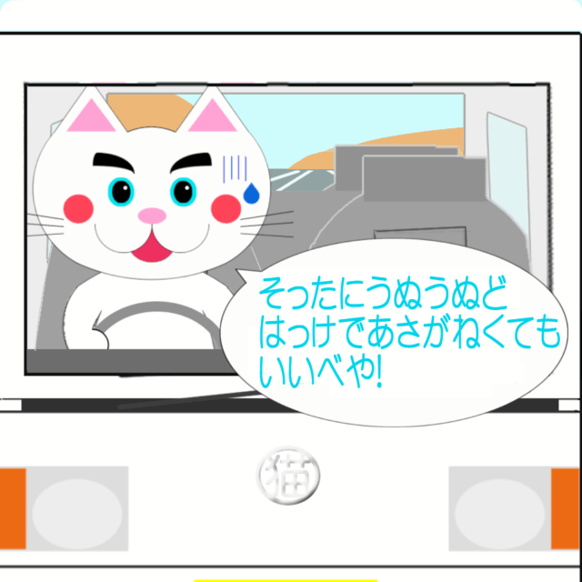 「なまねご」のワンポイント方言の解説イラスト・津軽弁監修:渡部航佑2025.11.14公開津軽弁:「そったにうぬうぬどはっけであさがねくてもいいべや!」標準語:「そんなに急いで運転しなくてもいいでしょ!」イラスト:安全運転を心がけるレオ君◇...